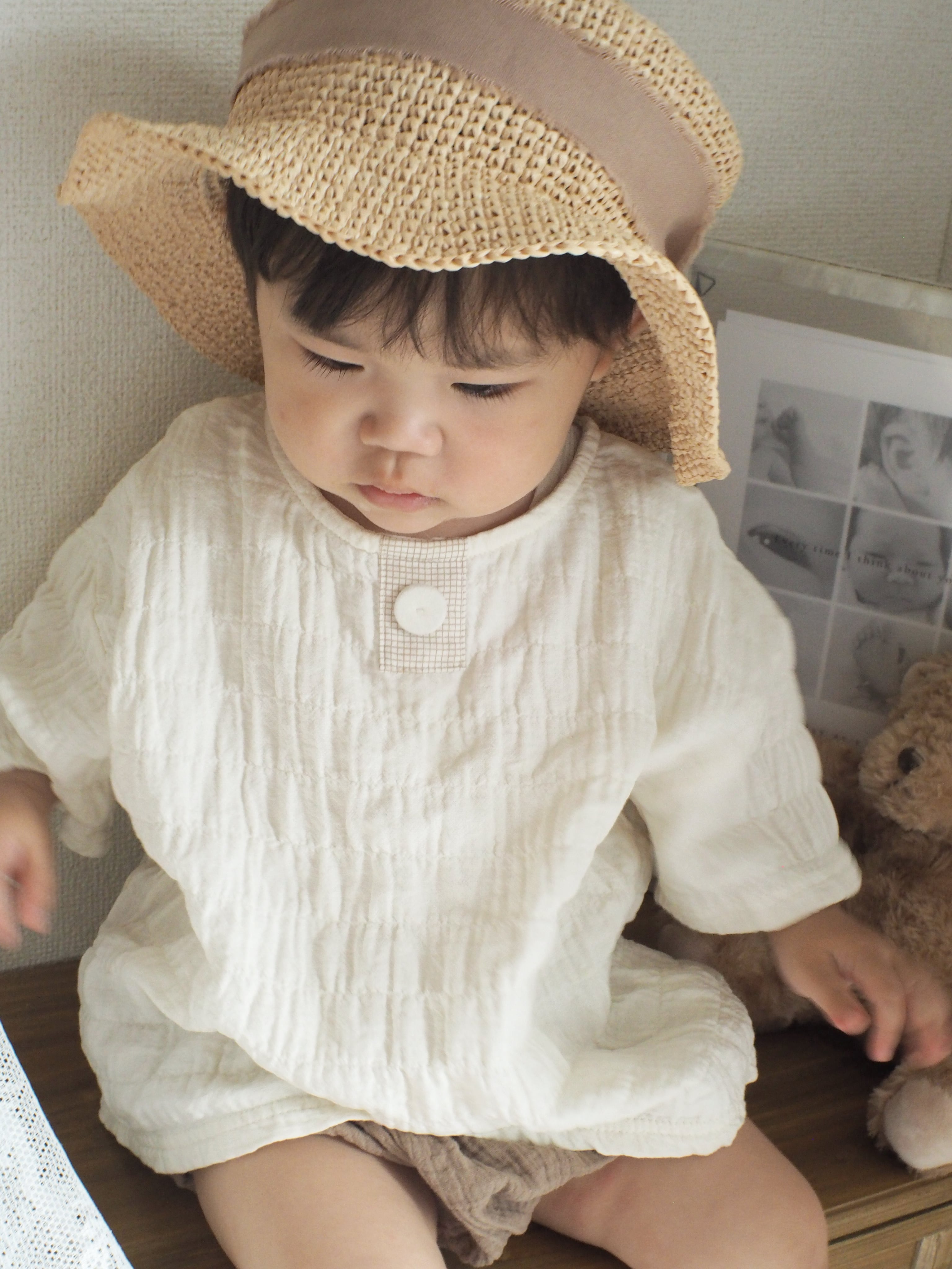 【納期】1-3日以内発送 【size】6-12m/12-18m 【brand】pee ka boo 【model】5-8枚目boy11m/72cm/9.3kg(撮影時) 17-20枚目boy1y8m(2シーズン着れました!) ユニセックスの 無地だけど、生地感が可愛くて 存在感のあるTシャツ♡ 凹凸のある生地は、お肌に触れる面積が 少なくて通気性も良く 涼しく感じるので夏にぴったり◎ 汗っかきベビーにおすすめのitemです! パフスリーブですが、cream、cocoaは 男の子でも着やすいカラー! 男の子だって可愛い服着せたい! って方はロンパースや サロペットのインナーとして、 チノパン、半ズボンと合わせて◎ 女の子はブルマ、スカートとも 相性良いです! 柄パンツとも合わせられ、着回せるので 夏服あと1着ほしいなぁって時に是非。 普段着からお出かけ着まで使えます! 横に伸縮性少しあります。 【6-12m】 着丈32cm 身幅23cm 【12-18m】 着丈34.5cm 身幅26.5cm <注意事項> ご購入前に必ずご確認お願いします。 ・海外製品のため検査基準が日本と異なりますので、日本製品と比べると縫製などが若干甘い場合、 おりじわがある場合などがございます。着用には問題ございませんので、ご理解の上ご購入くださいませ。 ・海外製品のため、商品素材などのタグが日本と異なる、または付属しない場合がございます。 スマートフォン、PC のモニターの環境により 商品画像と実物の色には多少見え方に差異がございます。 ・記載サイズは全て平置き採寸であり、多少の誤差が生じます。ご了承くださいませ。 ・商品によっては染料の性質上、汗や摩擦により、色落ちしたり他に色移りすることがありますので、ご注意くださいませ。 ・お客様都合での返品交換はお断りをしております。